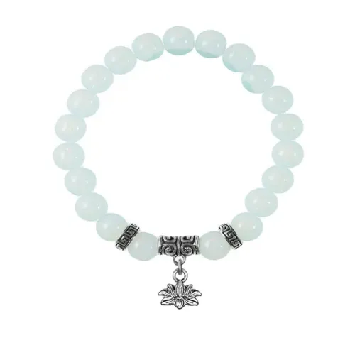 Браслет из синтетического лунного камня (опалита) с подвеской в виде лотоса.