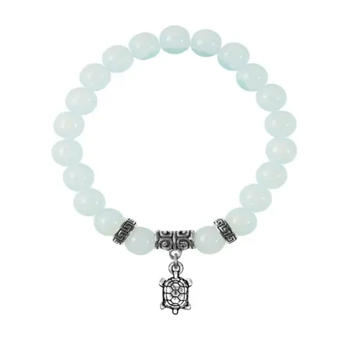 Браслет-амулет из синтетического лунного камня (опалита) с подвеской в виде черепахи.