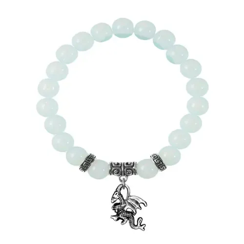 Браслет-амулет из синтетического лунного камня (опалита) с подвеской в виде дракона.