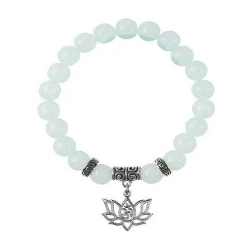 Браслет-амулет из синтетического опалита (лунного камня) с подвеской-талисманом в виде символов Лотос и Ом.