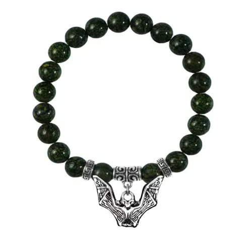 Браслет-амулет из натурального камня змеевик с подвеской-талисманом в виде летучей мыши.