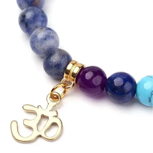 Браслет 7 чакр с подвеской Ом, натуральный камень BJBS-021