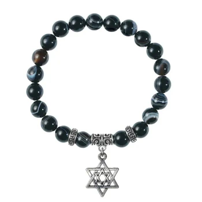 Браслет Звезда Давида (от сглаза и зла), Черный агат BSPE-24-02