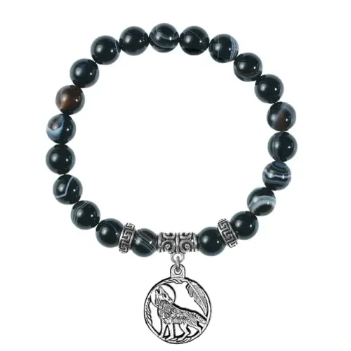 Браслет Волк (защита, сила, победа), Черный агат