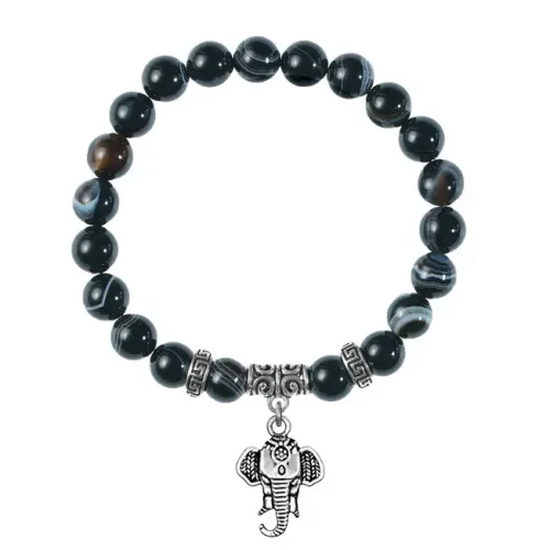 Браслет Слон (мудрость, сила, долголетие), Черный агат BSPE-24-26