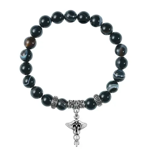 Браслет Кадуцей (здоровье, бизнес, гармония), Черный агат
