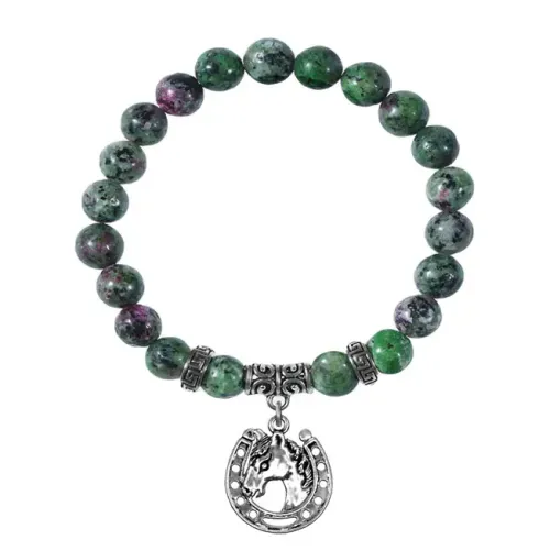Браслет-амулет из синтетического камня цоизит с подвеской в виде подковы.
