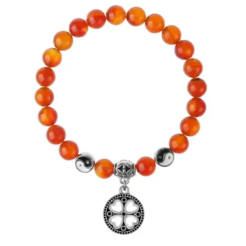 Браслет-амулет из натурального сердолика с подвеской-талисманом в виде клевера.