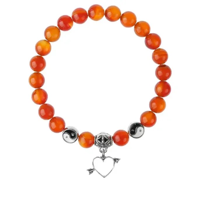 Браслет из натурального сердолика с подвеской в виде сердца.
