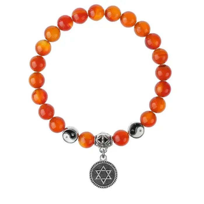 Браслет Звезда Давида (от сглаза и зла), Сердолик 8мм BSPE1-01-3012