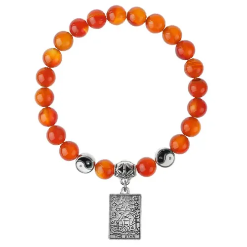 Браслет из натурального сердолика с подвеской в виде символа Таро «Звезда» из металлического сплава.