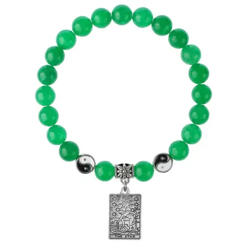 Браслет из натурального нефрита с подвеской-талисманом в виде карты Таро «Звезда».