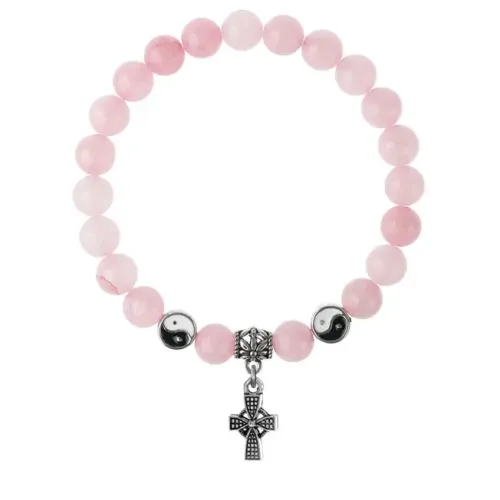 Браслет Крест (мудрость, гармония, процветание), Розовый кварц 8мм BSPE1-03-3004
