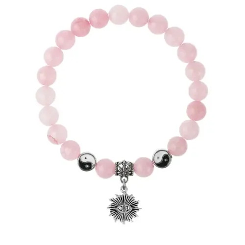 Браслет-амулет из натурального розового кварца с подвеской из бижутерного сплава.