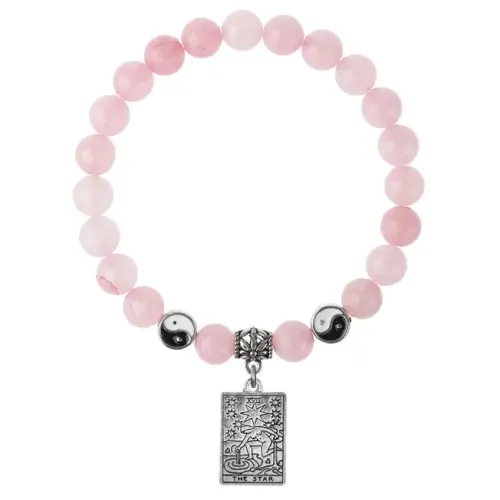 Браслет из натурального розового кварца с подвеской в виде символа Таро — Звезда.