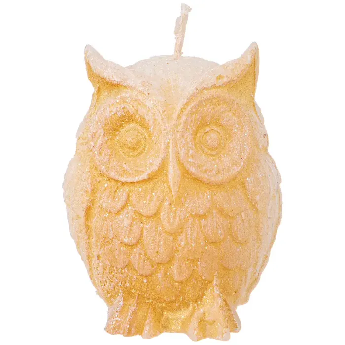 Свеча фигурная Сова белая с золотом 5*4,5 см – Bronco