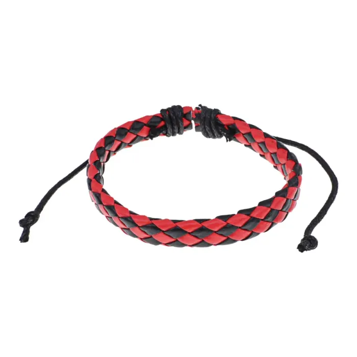 Плетёный кожаный браслет в чёрно-красном цвете.