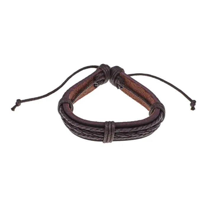Плетеный кожаный браслет, 1,5см, цвет коричневый BS696-02