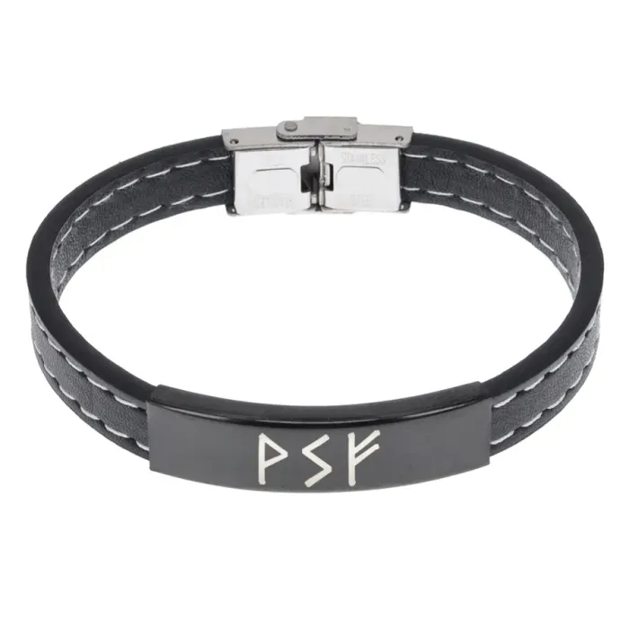 Кожаный рунический браслет Богатство на всех уровнях бытия BSKR2-044