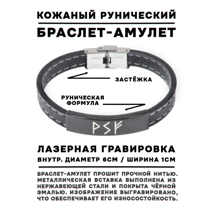 Кожаный рунический браслет с символикой богатства.