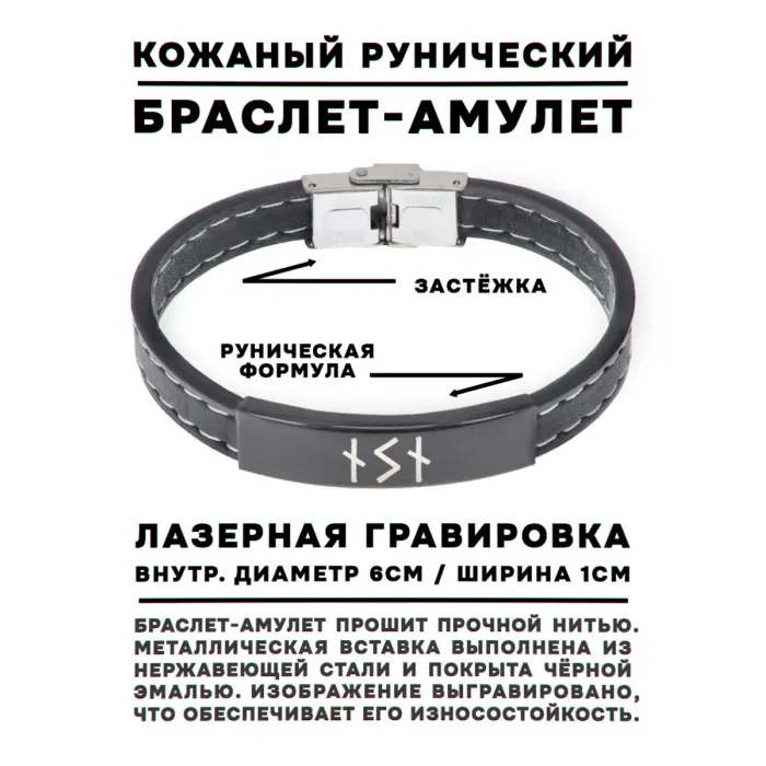 Кожаный рунический браслет с символикой для нейтрализации негатива.