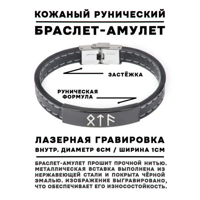 Кожаный браслет с металлическими элементами в виде рунических символов.