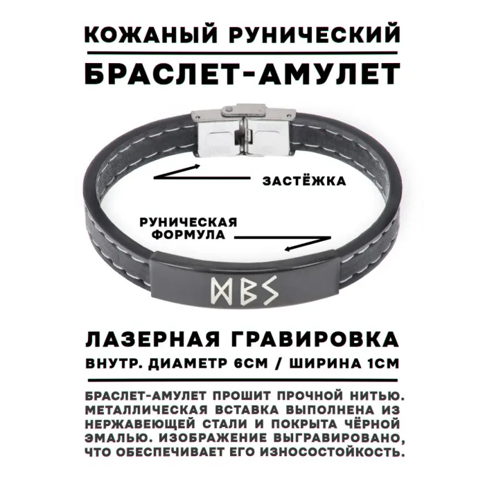 Кожаный рунический браслет с символикой обновления и очищения.