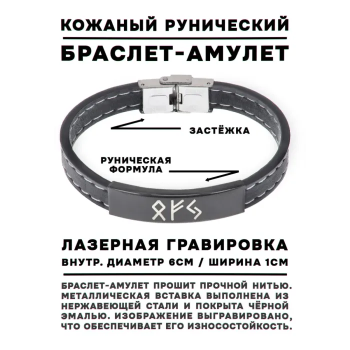 Кожаный рунический браслет с формулой Приумножение собственности.
