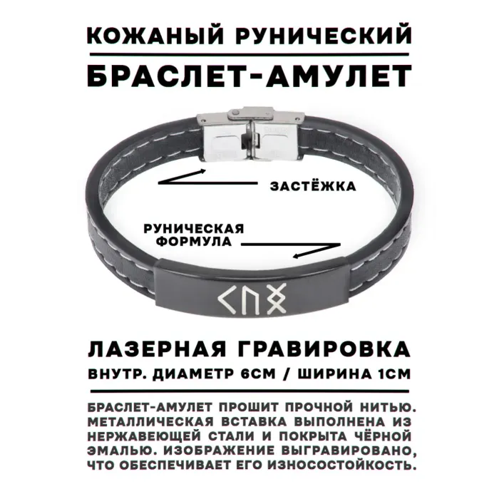 Кожаный рунический браслет Скорейшее избавление от болезней BSKR2-059