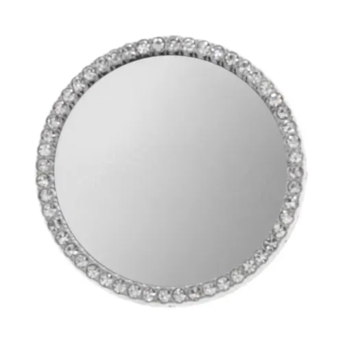 Наклейка для телефона с зеркалом. Изготовлена из бижутерного сплава с серебряным покрытием и вставками из стразов.