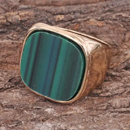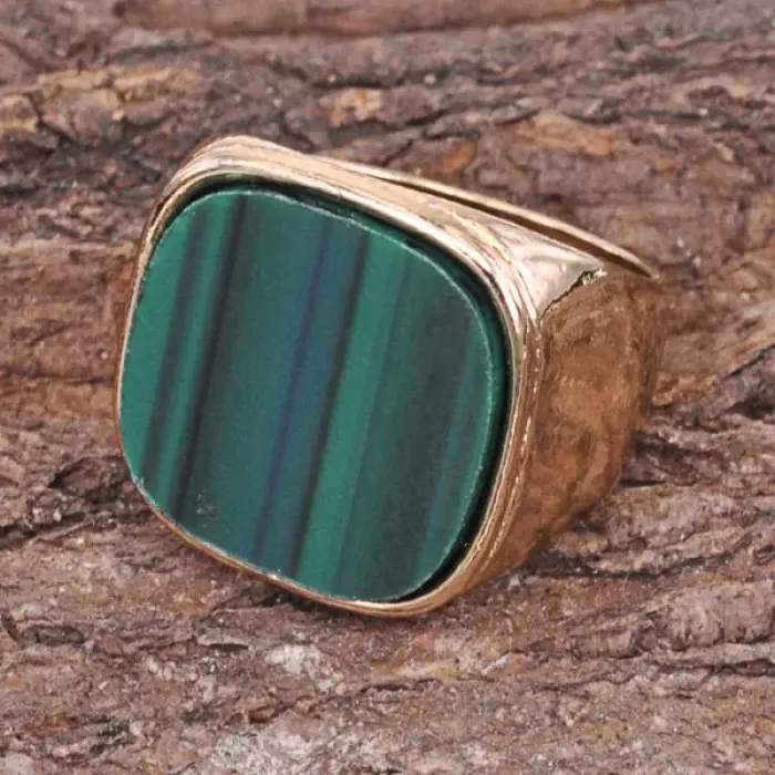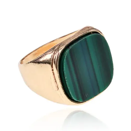 Кольцо зеленого цвета из бижутерного сплава с синтетическим камнем.