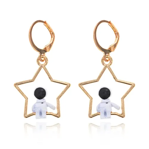 Серьги Космонавт на звезде, 35х20х10мм SE219-02