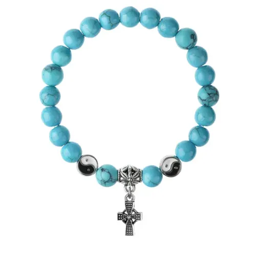 Браслет из синтетической бирюзы с подвеской в виде креста из бижутерного сплава.