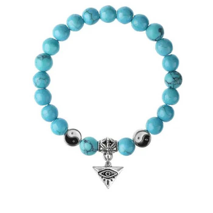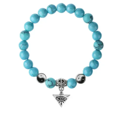 Браслет-амулет из синтетической бирюзы с подвеской из бижутерного сплава.