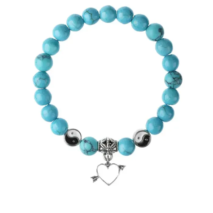 Браслет-амулет из синтетической бирюзы с подвеской в виде сердца.