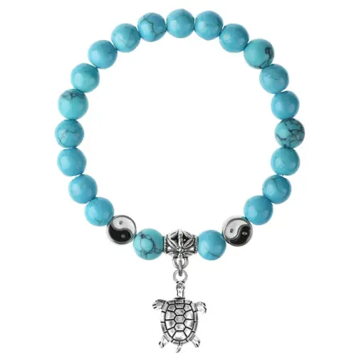 Браслет-амулет из синтетической бирюзы с подвеской в виде черепахи из бижутерного сплава.