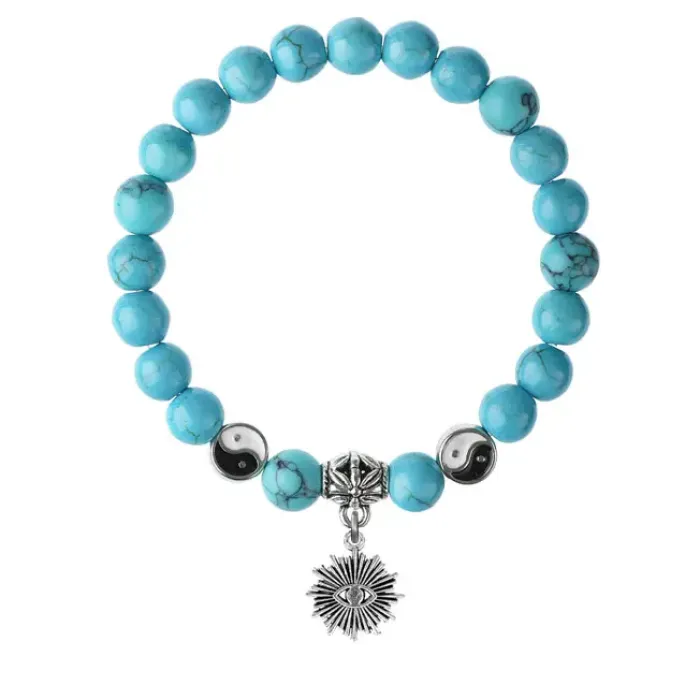 Браслет-амулет из синтетической бирюзы с подвеской-талисманом из бижутерного сплава.