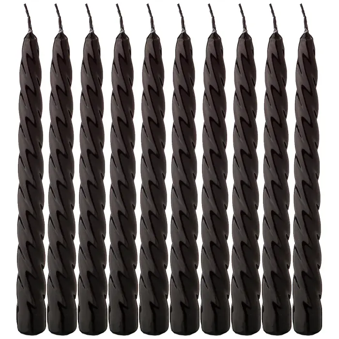 Набор свечей из 10 штук крученые лакированный черный, высота 23 см – Adpal