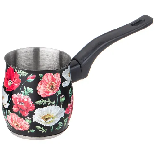 Турка для кофе Agness «Маки» — это кухонный аксессуар, предназначенный для приготовления ароматного кофе. Изделие выполнено из нержавеющей стали, что обеспечивает долговечность и сохранение вкуса напитка. Особенностью является капсулированное дно, подходящее для использования на индукционных плитах.