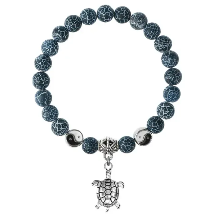 Браслет из натурального африканского агата с подвеской-талисманом в виде черепахи.
