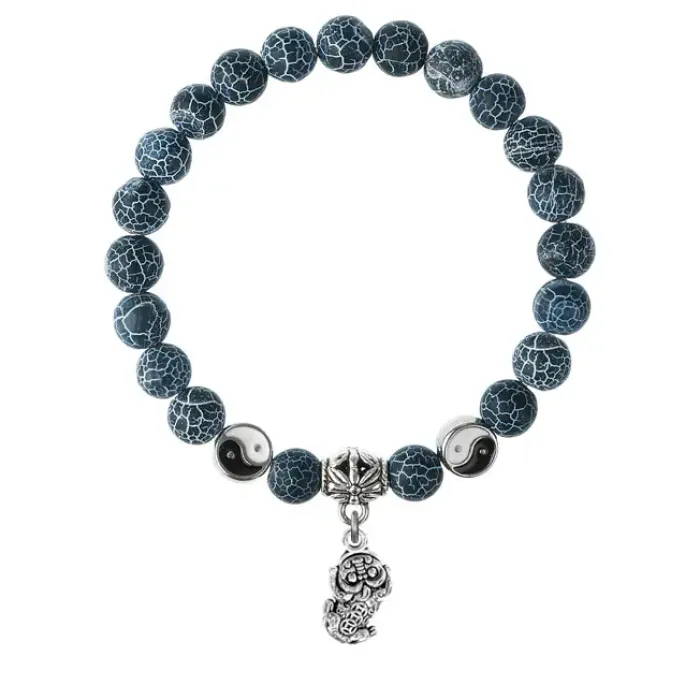 Браслет-амулет Пи Яо из натурального африканского агата с подвеской из бижутерного сплава.