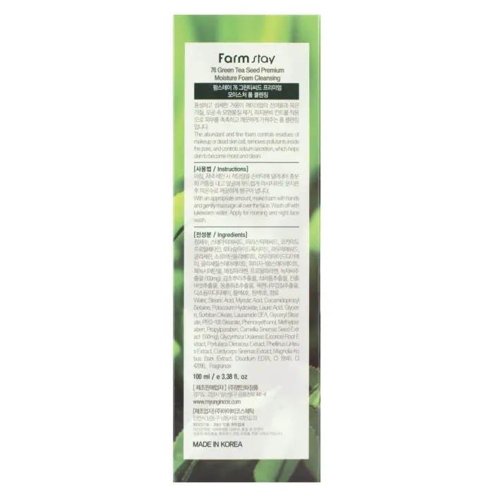 Пенка для умывания Green Tea Seed Premium Moisture Foam Cleansing 100 мл FarmStay