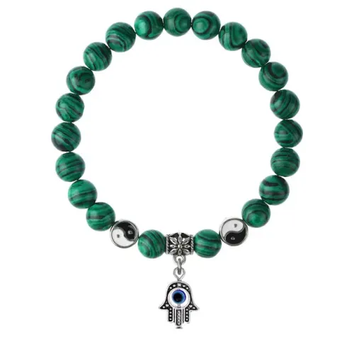Браслет-амулет Хамса из синтетического малахита с подвеской в виде символического талисмана.