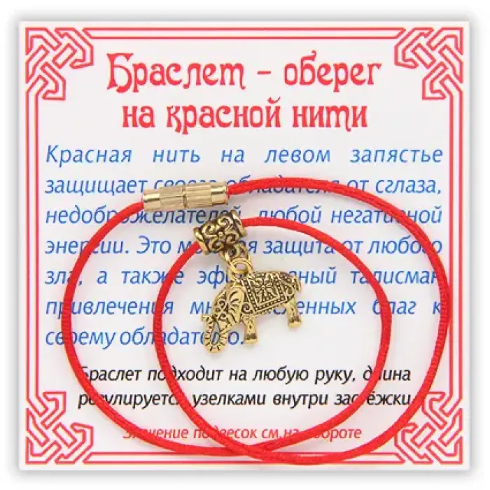 Браслет на красной нити Слон — это не просто украшение, а мощный оберег, символизирующий мудрость, силу и долголетие. Изготовленный из высококачественной красной шелковой нити с закручивающимся замком и подвеской-талисманом, он станет надежным защитником от сглаза и негативных влияний.