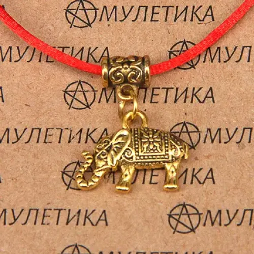 Браслет на красной нити Слон (мудрость, сила, долголетие), цвет золот. KB036