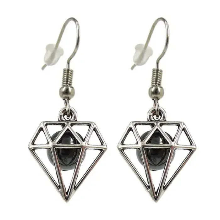 Серьги на Богатство (Диамант) с камнем Гематит 8мм,цвет сереб, металл SP110336