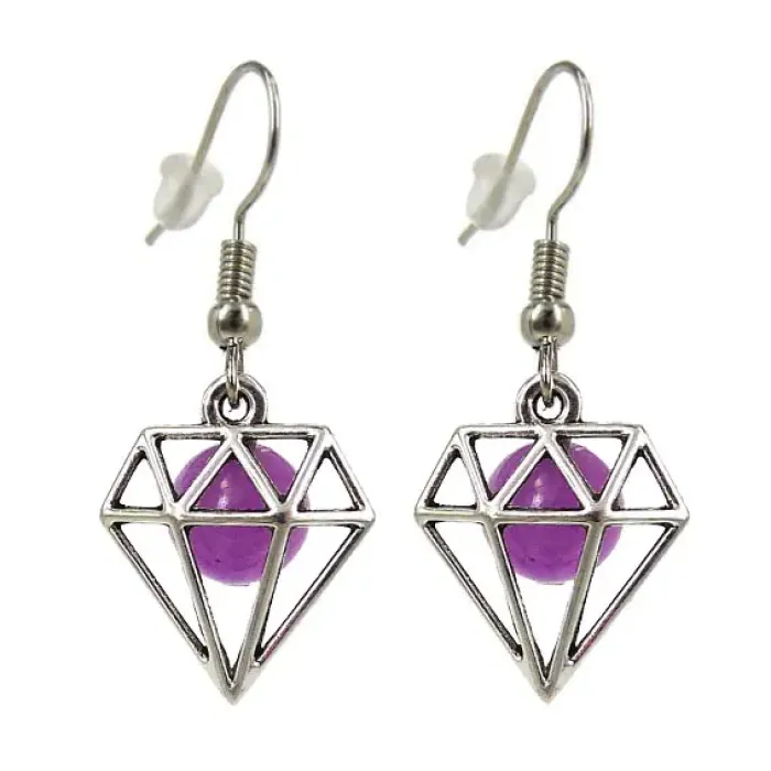Серьги на Богатство (Диамант) с камнем Агат (фиолетовый) 8мм,цвет сереб, металл SP490336