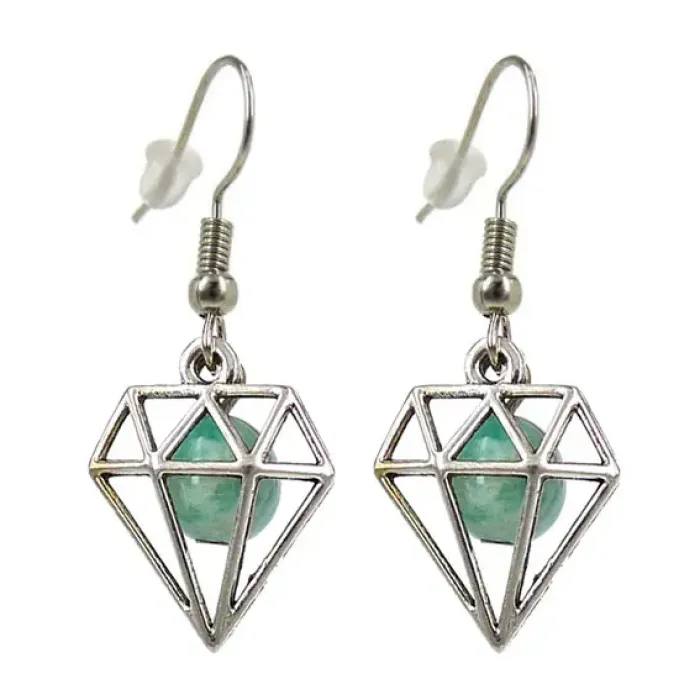 Серьги на Богатство (Диамант) с камнем Амазонит 8мм,цвет сереб, металл SP550336