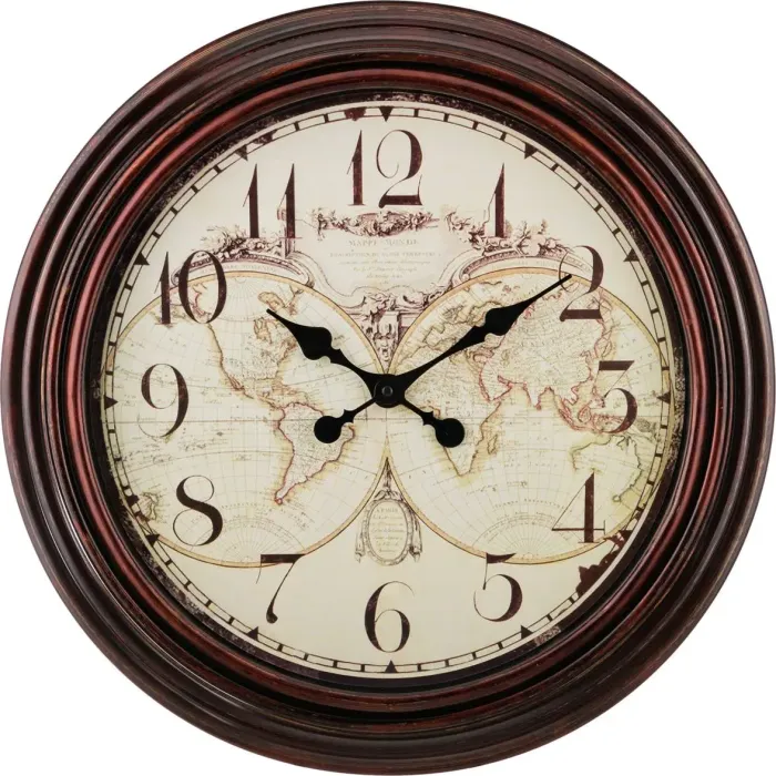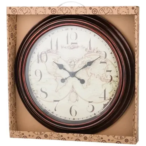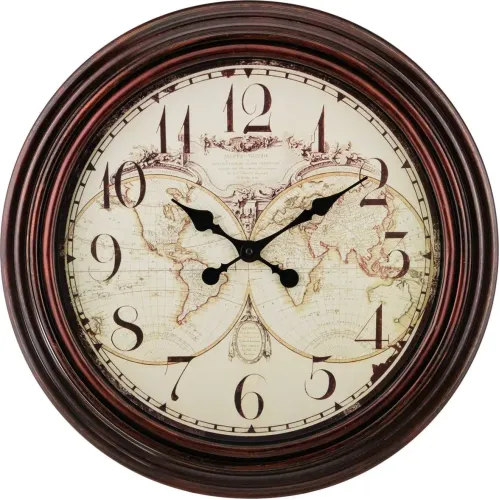Часы выполнены из качественного пластика, что обеспечивает их долговечность и устойчивость к внешним воздействиям. Дизайн с картой мира добавляет оригинальности и делает их универсальными для разных стилей интерьера. Кварцевый механизм гарантирует надежную работу без необходимости частого обслуживания.