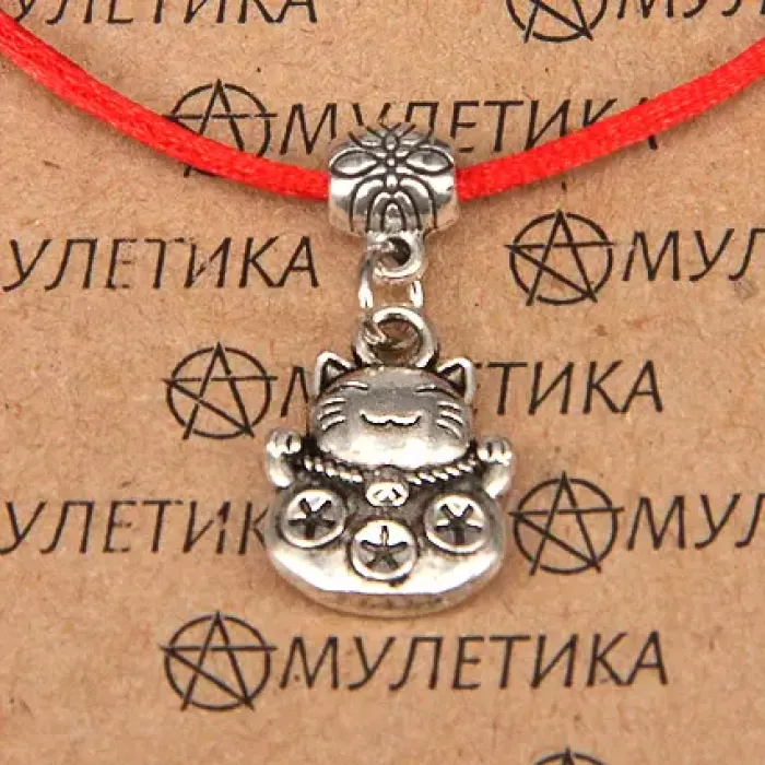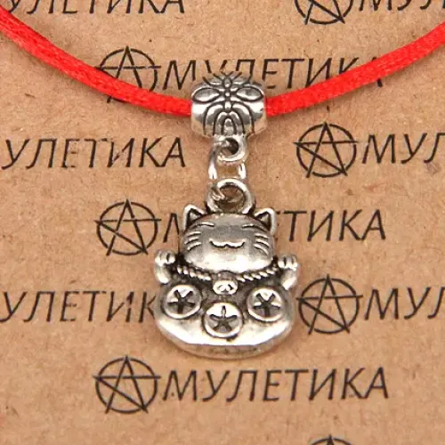 Браслет на красной нити Манеки-Неко (защита), цвет серебр. KB037